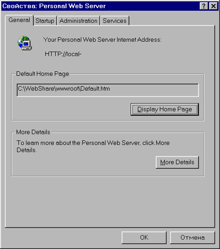 вы используете Microsoft Personal Web Server, то в диалоговом окне